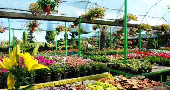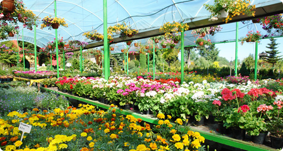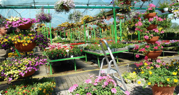 • szeroki asortyment kwiatów doniczkowych i balkonowych